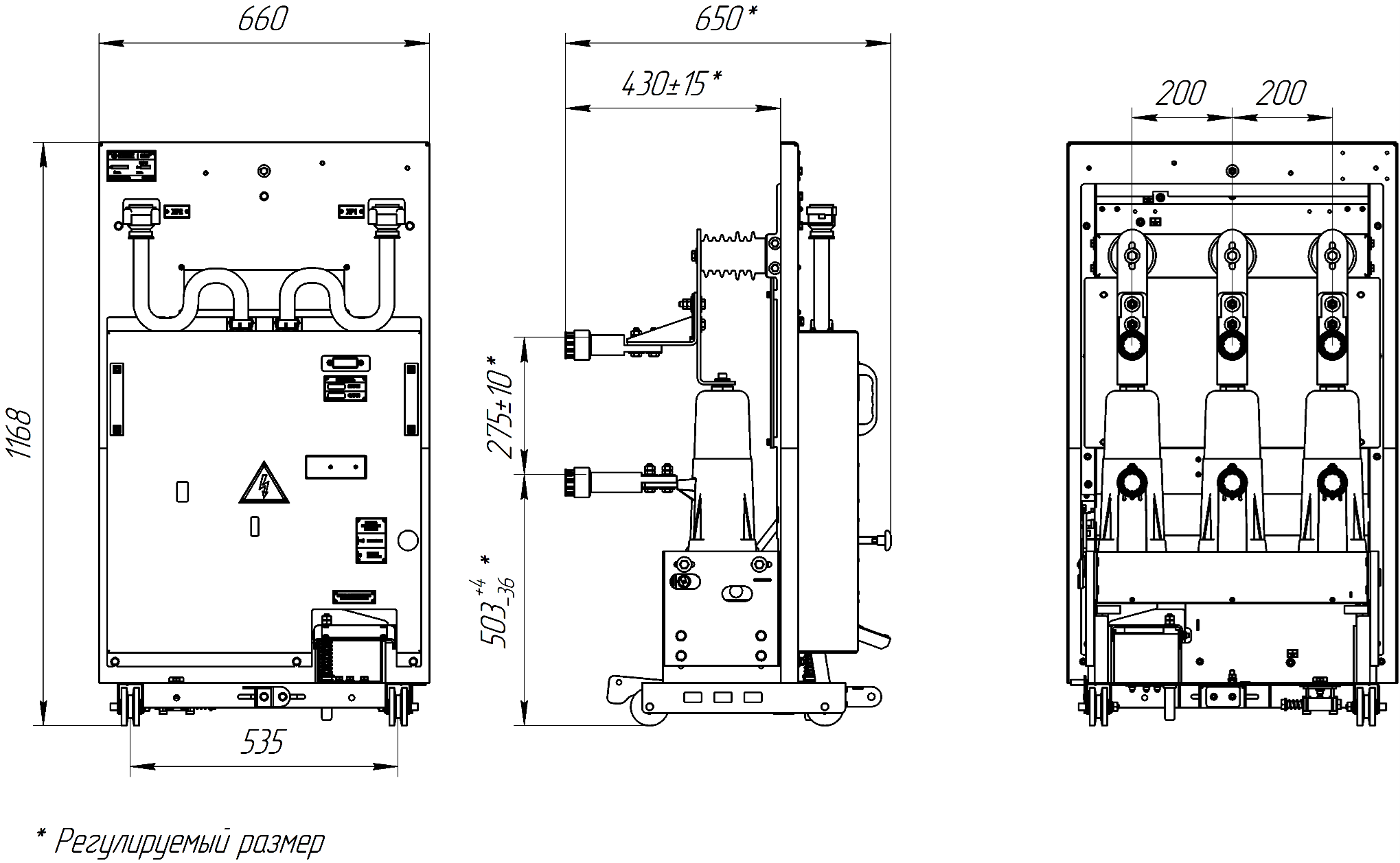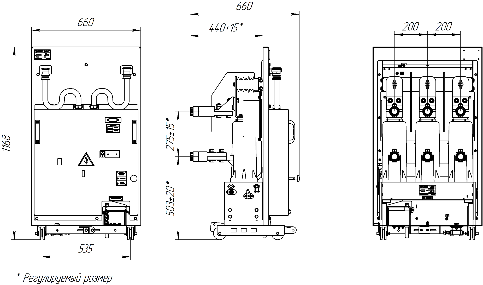 | П р и м е ч а н и е – более подробная информация по техническим характеристикам вакуумного выключателя и блока управления содержится в соответствующих руководствах по эксплуатации поставляемых с выкатным элементом производства ООО «КЭПС». | |
