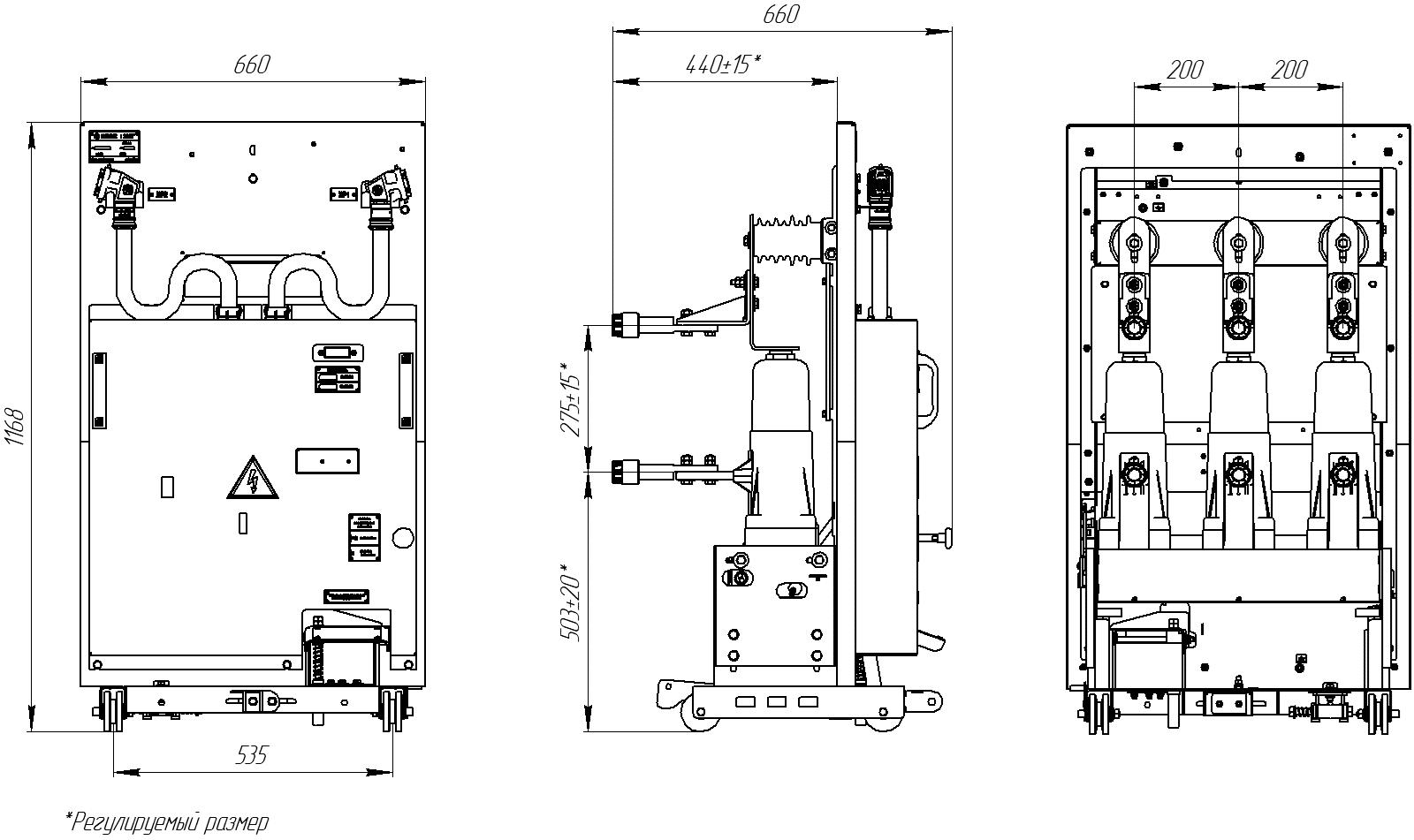 Габаритный чертеж выкатного элемента КЭПС-ВЭ К-47, К-49 К-59 на номинальный ток 2000 А