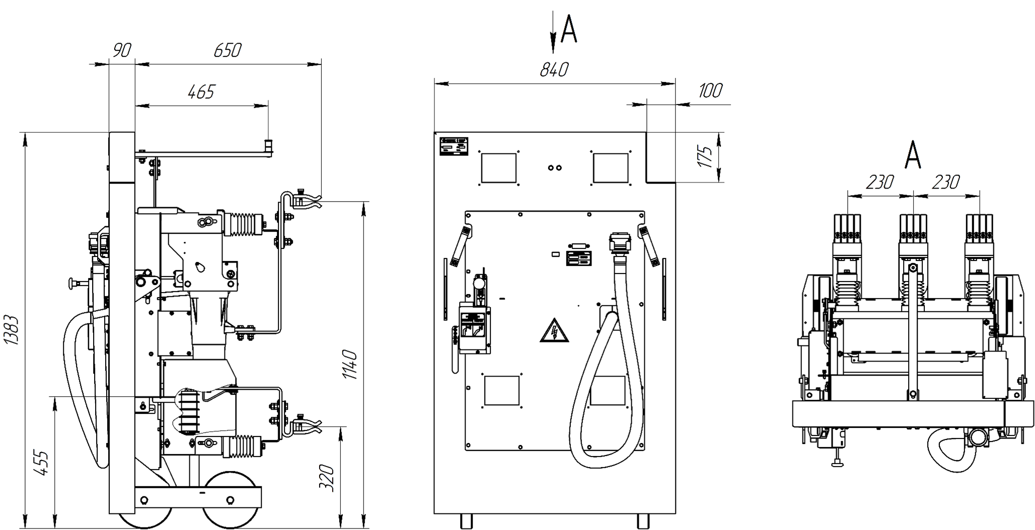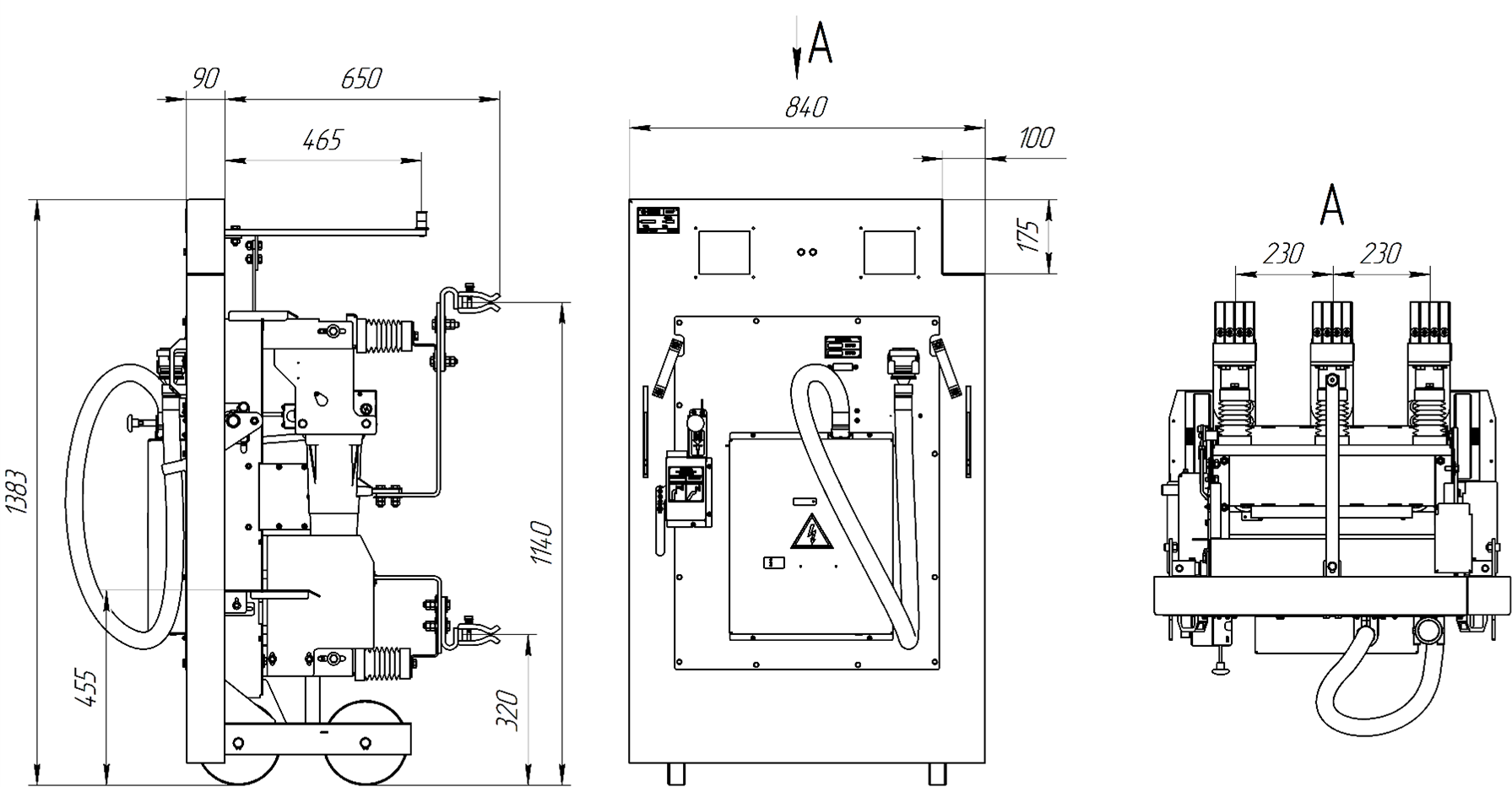 Габаритный чертеж выкатного элемента КЭПС-ВЭ K-XXVI 1000А с блоком управления на выкатном элементе